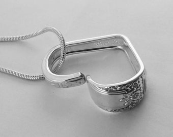 1937 LOVELY LADY Silverware Spoon HEART Necklace/Slide/Pendant Antique Silverplate Jewelry Flatware Choice of Length 2mm Snake Chain Gift
