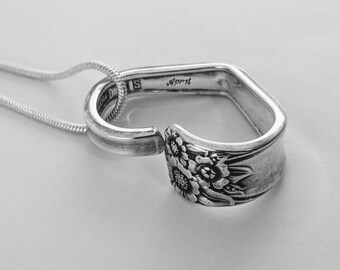 1950 APRIL Silverware Spoon NECKLACE/Slide/Pendant Antique Silverplate Jewelry Flatware Choice of Length 2mm Snake Chain Gift
