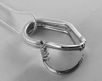 1948 REMEMBRANCE Silverware Spoon HEART NECKLACE/Slide/Pendant Antique Silverplate Jewelry Flatware Choice of Length 2mm Snake Chain Gift