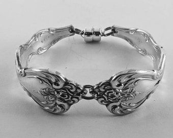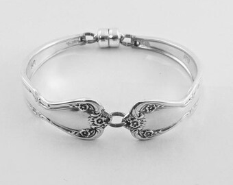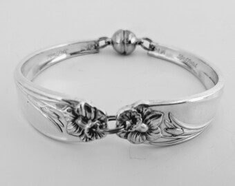 1951 MAGNOLIA Silverware Spoon BRACELET Medium (Fits 6"-7" Wrist) Strong Magnetic Clasp Antique Silverplate Jewelry Flatware Gift