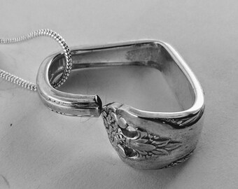 1940 AVALON/CABIN Silverware Spoon NECKLACE/Slide/Pendant Antique Silverplate Jewelry Flatware Choice of Length 2mm Snake Chain Gift