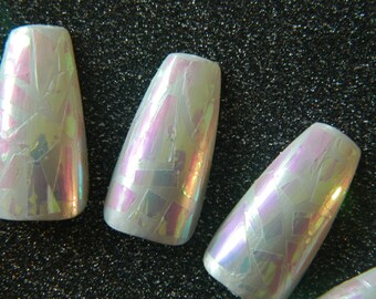 Shattered Glass Coffin Style False Nails.