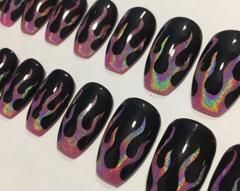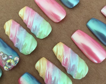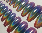 Coffin Nails Rainbow Holographic Press On Nails - False Nails -Fake Nails