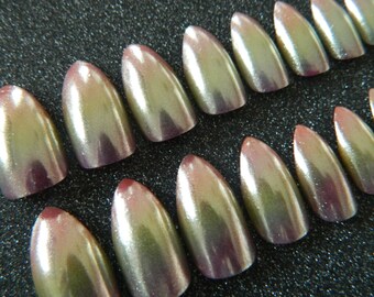 Purple Opal Shimmer Stiletto False Nails.