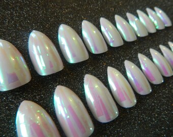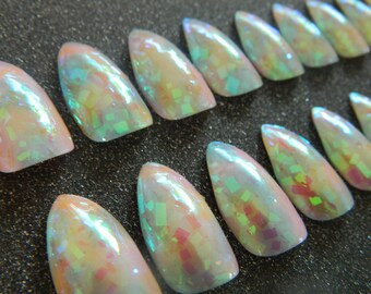 Opal/Mother of Pearl Effect Stiletto False Nails.
