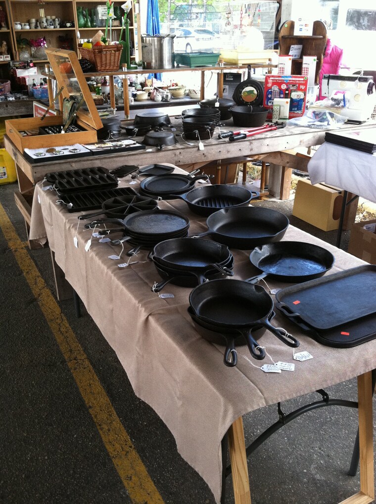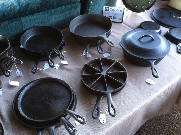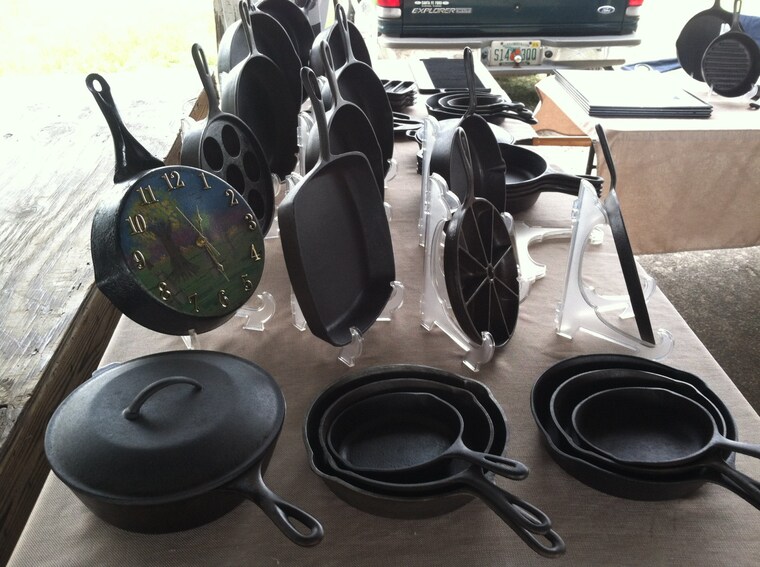 We have cooked and worked with vintage cast iron cookware for many years, not claiming to be an expert of course but thru trial and hard labor have learned to clean and restore the pieces we have been fortunate enough to come across and collect. I still am fascinated finding pieces fifty and over a hundred years old that we are still able to use on a daily basis. Our process is simple and taken from older gentlemen I have had the pleasure to meet and be associated with thru our trade shows and flea market sales. It seems there is no end to the information that we come across if we are willing to just listen.
