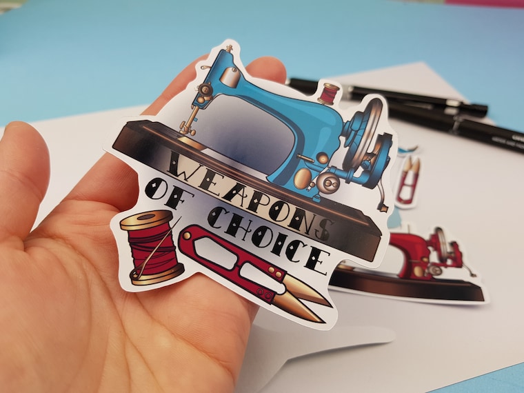 one of my "weapons of choice" die cut stickers! -