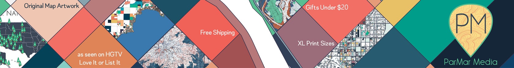 Inspiration for the maps mainly comes from things that Jeff has seen and the places that he has been or wants to visit. He also enjoys finding vintage maps of old cities and revamping them with his own style and color schemes. His eye for creating awesome color combinations make the ParMar Media maps standout and speak to the individuality of himself, as well as the one who purchased it.