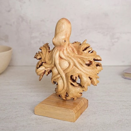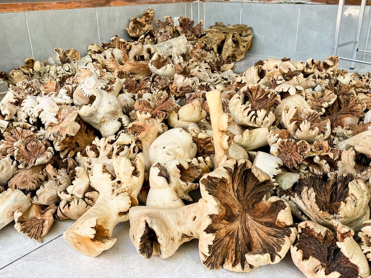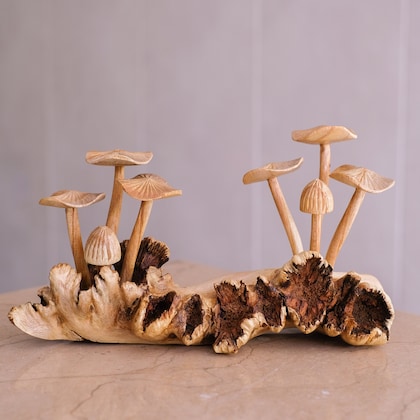 5 out of 5 starsThis piece is truly gorgeous. I love the driftwood backing and the mushrooms are expertly carved. It took two weeks to get to MO from Indonesia, tho no fault of the owner. A bit of a wait, but now that it's here I'm very happy with it. A lovely piece of art.