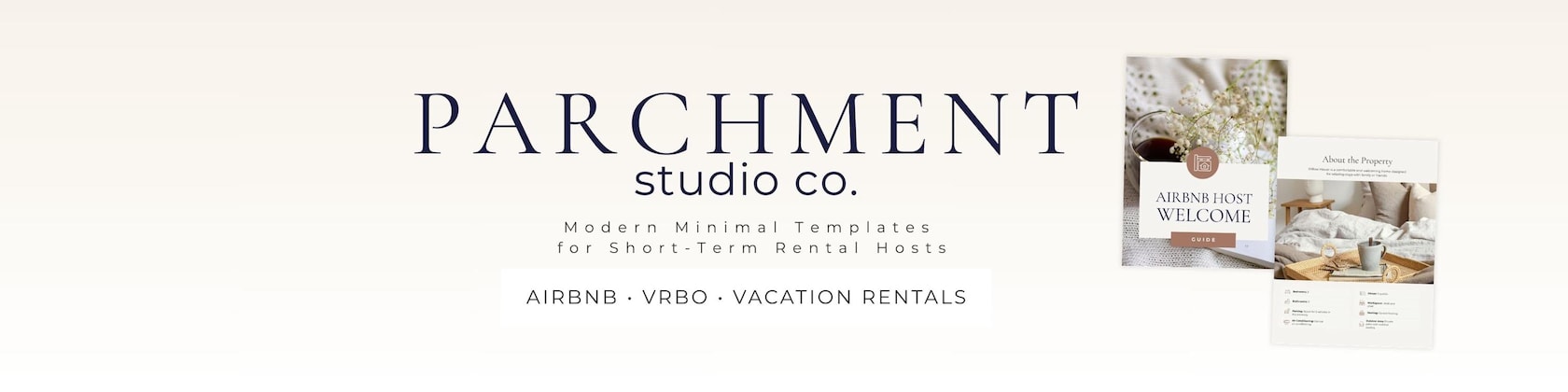 Parchment Studio Co creates modern minimal templates for short-term rental hosts. Built with structure and clarity in mind, each design helps elevate guest experience and simplify operations through clean, professional layouts.