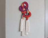 5 out of 5 stars...A+ aesthetically and technically...most excellent design, colors, placement and choice of solid and variegated specialty/hand spun yarns that uniquely highlight textually and visually the overall fiber piece...many thanks from our family for sharing your expert fiber art talent with us!!! (shipped quickly and packed well)