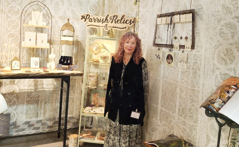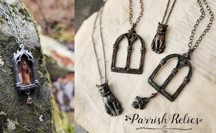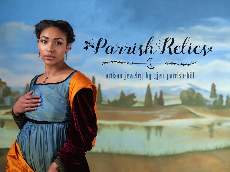 Jen Parrish-Hill is a jewelry designer who draws from her Stained Glass and Art History background at SMFA Boston to create a unique jewelry line inspired by the symbolism of Mythic Nature and Ancient Architecture.