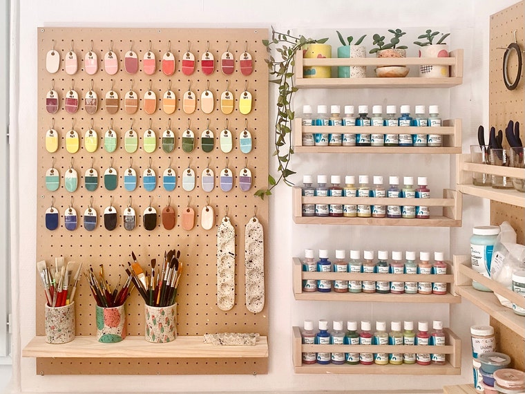 Céramiste essentiellement autodidacte, je crée des bijoux et de petits objets décoratifs, dans mon mini atelier de 13m2, situé dans une partie indépendante de la maison. Mes créations reflètent mon goût pour les couleurs et les formes ludiques.