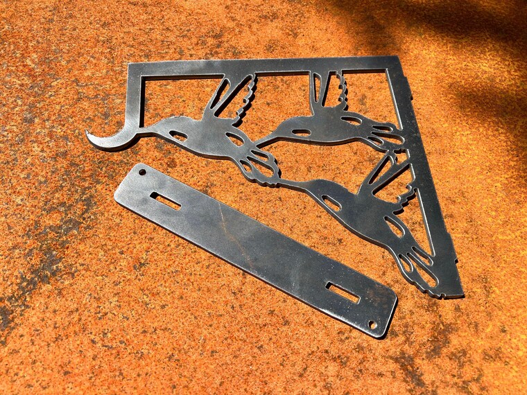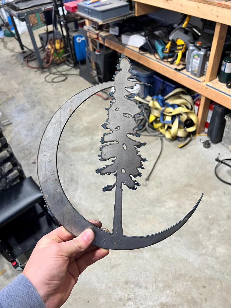 Alle metalen kunstborden worden gesneden met behulp van een Langmuir CNC-plasmatafel met computerondersteund ontwerp uit 16ga zacht staal of 1/8" zacht staal en geverfd met hoogwaardige metaalroestverf om jarenlange prestaties binnen of buiten te garanderen zonder roest of verslechtering van de afwerking.