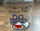5 out of 5 starsThis dog treat jar is the cutest addition for my pet supplies! It makes it easy to mix different treats so my boys have a variety, and I do not feel like I have to hide it in a cupboard like the treat bags. I would recommend for anything dog owners! Plus the Buffalo Bills reference is a nice touch of home while living in NC!