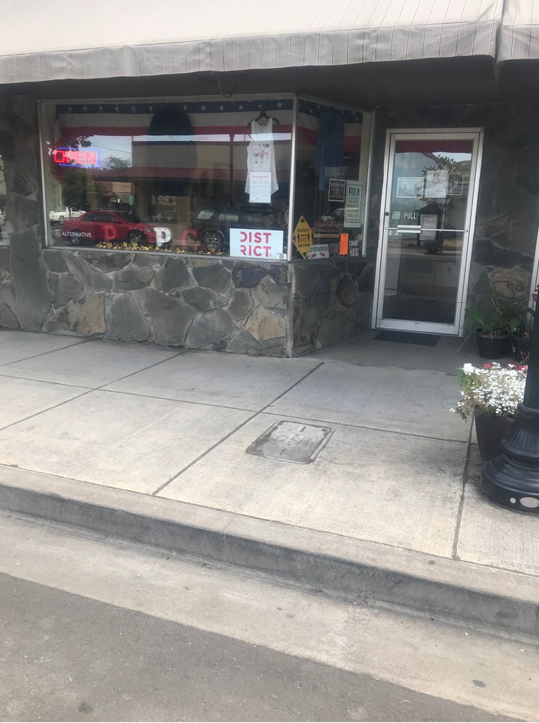 Where door of PepCo Designs is located. There is construction on one side of the road. -