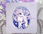 5 out of 5 starsShe's gorgeous. The colors are lovely and dreamy and the background matches the art so well. The price for the size and quality can't be beat, she's perfect and a lovely art piece for any Last Unicorn fan or any unicorn lover in general! She has a place of honor in my unicorn collection and I love her so much!! I got the sparkly sticker version as well which is just as perfect!