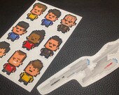 Vendendo bonecas, adesivos e muito mais,