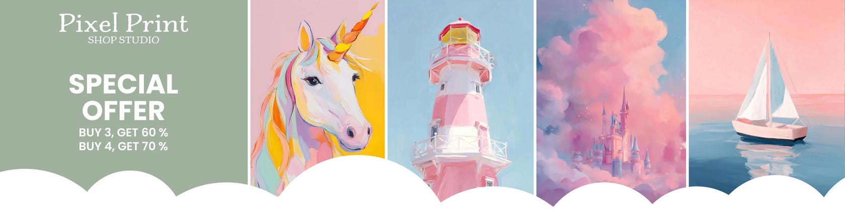 Welcome to our boutique print shop, where vibrant colors meet vintage charm. We specialize in digital prints inspired by pastel retro aesthetics, blending bold, luminous tones with nostalgic design. Each piece is crafted to bring warmth, character, and a touch of timeless style to any space. Whether you're decorating your home, office, or looking for a unique gift, our collection offers standout artwork that brightens and elevates every environment.