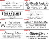 Address stamps, return address stamps, wedding stamps, favor stamps, library stamps, birthday stamps, custom address stamps, business logo stamps, wooden stampers, self inking stamps, address labels