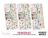 You can print them on sticker paper - Full Sheet Shipping Labels work really well - that you can purchase easily online on places like Amazon, or regular printing paper. If you use regular printing paper, you can use a glue stick to adhere the stickers to your planner.