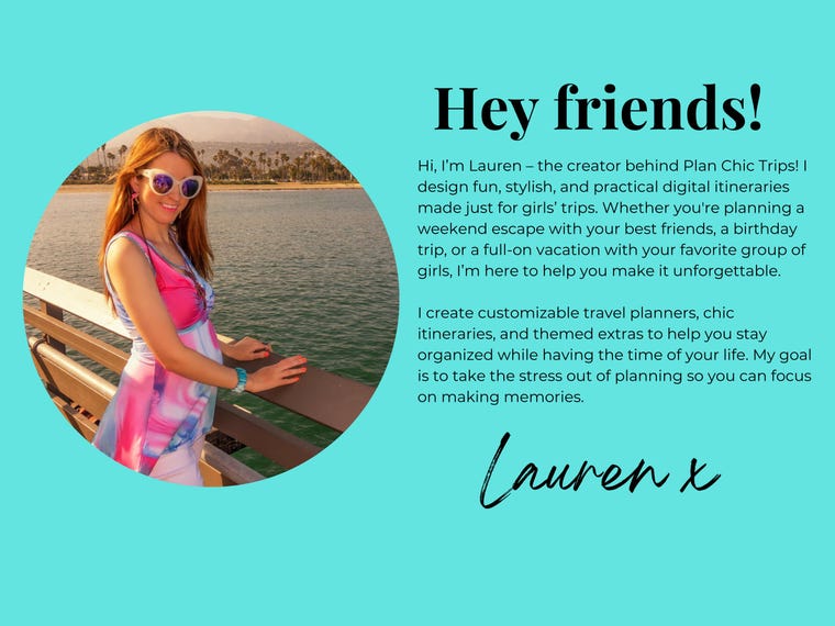 As a lover of travel and all things girl squad, I understand the excitement of planning the perfect getaway. That's why I created Plan Chic Trips—to bring a touch of chic to your travel organization game.