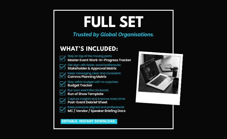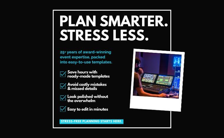 This extensive international background in corporate events, sponsorship activations, media launches, conferences, and weddings has equipped me with valuable, real-world insights that I now share through carefully crafted templates.