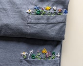 As a child, my grandmother taught my sister and me to cross-stitch. I used to love creating and stitching little patterns. As I got older, I dropped off stitching and took up other hobbies. Fast forward to 2022, I became interested in learning embroidery. My sister-in-law would embroider beautiful, botanical patterns on her jeans, and I wanted to learn to do the same. My grandmother, a life-time stitcher, was so excited that for my birthday she bought me everything I needed to get started with embroidery! The following winter, I started embroidering gifts for family and friends onto used clothing. Why used clothing? I have always loved conserving and the idea of creating something new out of something old. My husband, ever the entrepreneur, encouraged me that I could turn this into a business. In the spring of 2023, Remake the Old began!
