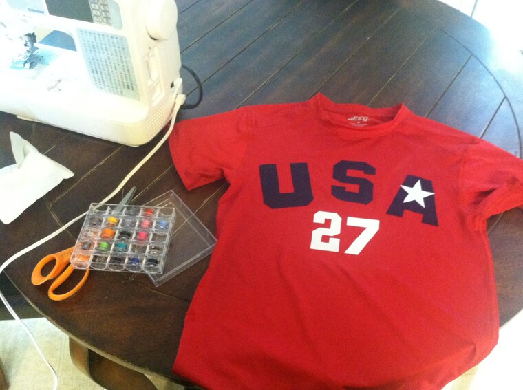 My daughter wanted to be the USA Team softball pitcher Jenny Fench for a school project so I made her a jersey.
