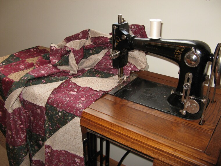 Besides modest clothing, I love to sew quilts...specifically piecing them on my antique treadle sewing machine, and then finishing them in a variety of ways. Mainly by machine quilting them on the same machine (!) or tying them with yarn. I have hand-quilted a number of creations, but that is reserved for only the special projects as it is quite time consuming. :)
