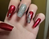 hi Karen! I appreciate the honest feedback. In the description of the nails I did state I would message you once the order was placed to get your Nail size. i did try for 2 days to get ahold of you, with no response so I kindly decided I would make you two sets of the same nails to ensure they fit (you received 20 nails instead of 10). they were all dry so im not quite sure what you mean they were stuck together. would you mind sending me a photo so I know what the problem is and where I can improve packaging? heat may have played a factor, but regardless I do apologize. a picture would be very helpful so i know how to improve that. i also have added sizes to avoid no response through message for nail size. thank you!
