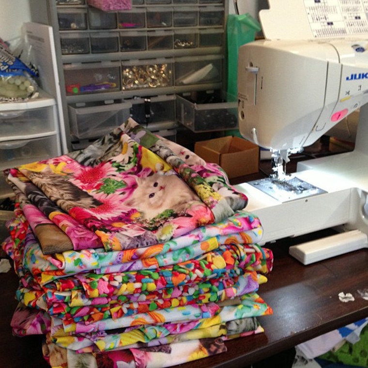 Mountain of completed kitty sweaters -