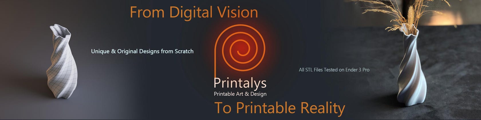 3D designer crafting original printable art, vases & decor with precision and creativity. Each model is an original Printalys creation.