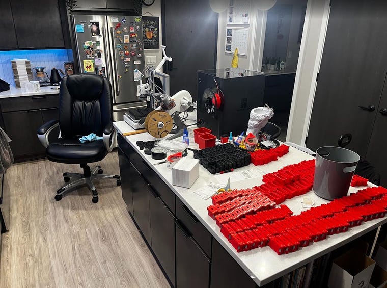 Mi taller empezó siendo un pequeño rincón de mi casa donde experimentaba con la impresión 3D mientras trabajaba en el sector de la fabricación e ingeniería. Lo que comenzó con una sola impresora pronto se convirtió en dos, luego tres, seis, nueve, y finalmente en una granja de impresión completa, junto con una gran pasión por crear productos funcionales y de alta calidad para el uso diario.