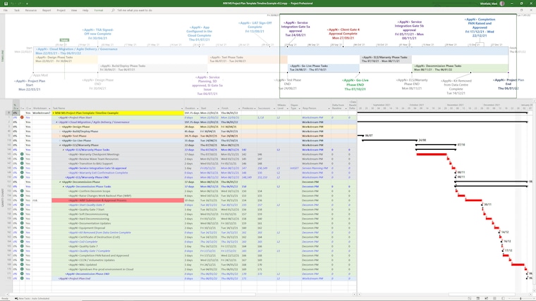An example of an editable MS Project MPP MSP template. Many included in the download file provided.
