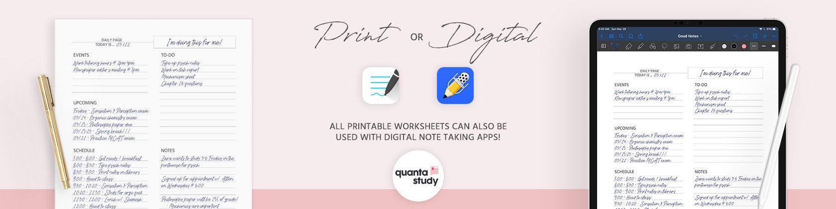 Here at Quanta Study, we are dedicated to making detailed worksheets for planning and studying that get you results. Each page is carefully crafted for maximum functionality. And with a design layout that is both simple and intuitive to use.