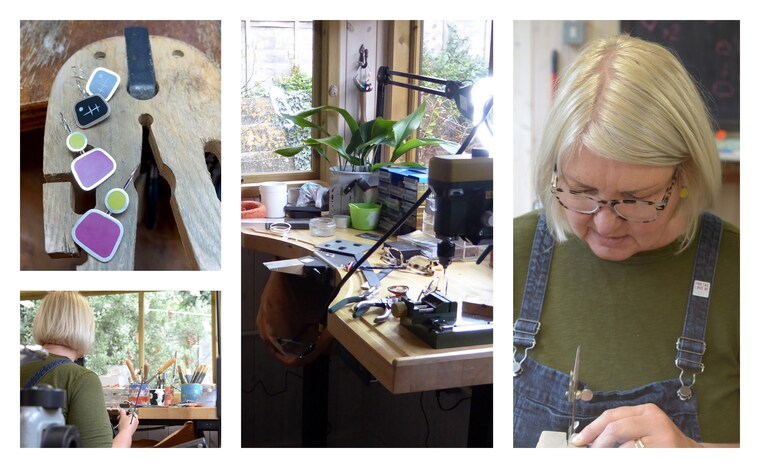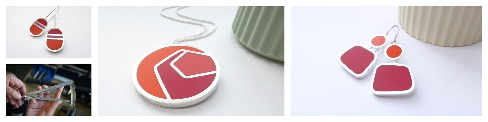 My professional workshop is in the beautiful Georgian city of Bath. I enjoy the traditional precision of working with silver and combining it with the challenges of alternative materials and techniques such as resin. Resin is such a versatile material. I can add glorious colour and make bold sculptural shapes, yet it is still lightweight and comfortable to wear.
