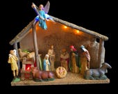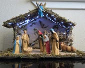 4 out of 5 starsI purchased the handmade Christmas nativity scene with colored USB lighting from RC Dallas Design. While the structure itself is beautiful, my only disappointment was how it arrived. The box was badly mishandled by USPS, even though they placed FRAGILE HANDLE WITH CARE stickers all over the box!! Given the fragility of the piece, especially with 12 figurines attached, it should have been securely bubble wrapped in its box. As a result of the poor packaging, numerous figurines broke off during shipping. However, the vendor offered to repair it for me. I love the design and appreciate RC Dallas Design working with me to fix the damage. Therefore I would highly recommend this Etsy Seller RC Dallas Design and hope they improve the quality of shipping materials for his unique & beautifully created works of art.