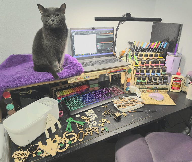 The 'RC' of RC Dallas Design, Robert and Cat. Robert is the business owner and Cat designs and produces the majority of the products.