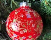 5 out of 5 starsAbsolutely gorgeous ornament! The floral pattern on it is absolutely beautiful and so detailed. Too pretty to only bring out at Christmas! It arrived well-packaged in a separate little box with a nice silver hanger. Fast shipping too! Thanks so much!
