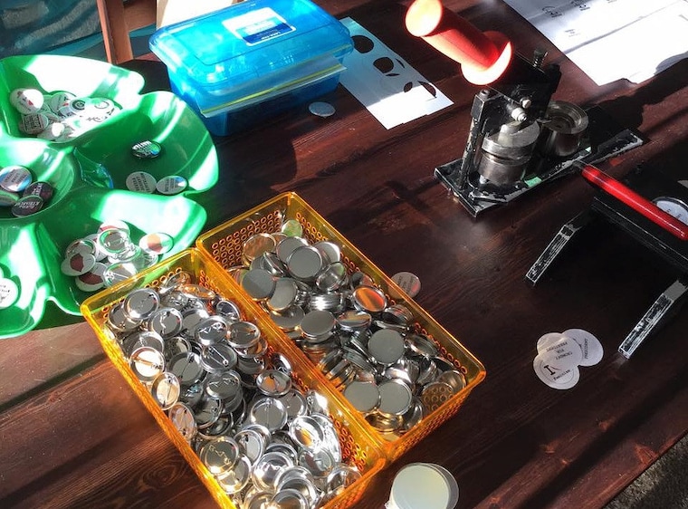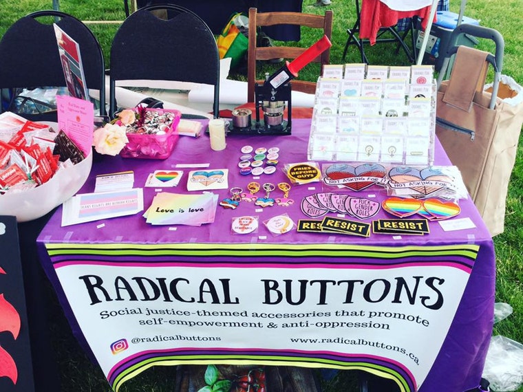 Our goal is to raise awareness about social-justice issues and promote equality, anti-oppression & self-empowerment. All buttons, fridge magnets, pocket mirrors and coasters are designed and hand-made with a Tecre button press!