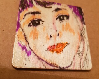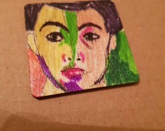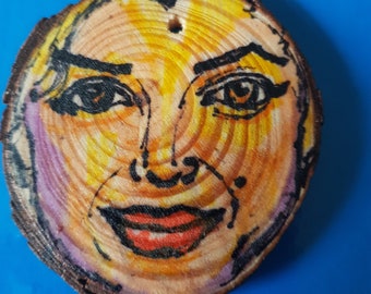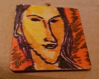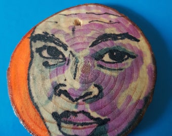 Original artwork pendant, plaque, ornament, decoration Expressionist portrait