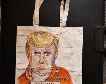 Original artwork tote canvas bag Donald Trump in his orange jumpsuit