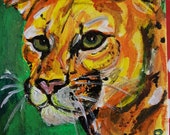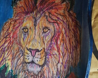 Original artwork tray Lion of the Savannah hand decorated and totally unique