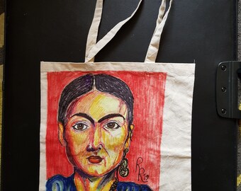 Original artwork Canvas tote bag Mexican woman original portrait