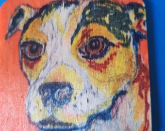 Original artwork coaster Staffordshire Bull Terrier portrait