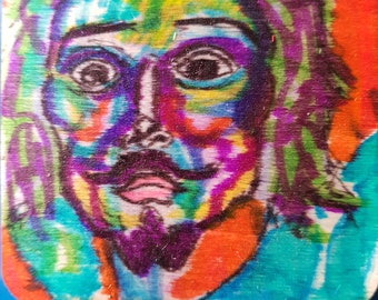 original artwork small wooden tile famous expressionist portrait