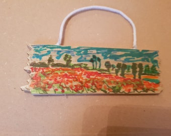 Original artwork wooden plaque poppy Fields by Vincent Van Gogh Expressionism