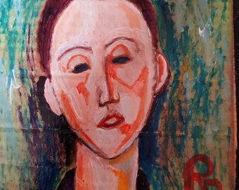 Original artwork Acrylic Painting study from a Mogdiliani
