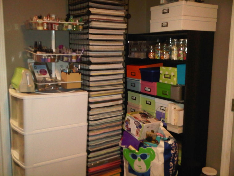A small sampling of the stash which has since been re-organized.... why yes thats a floor to ceiling stack of paper! -